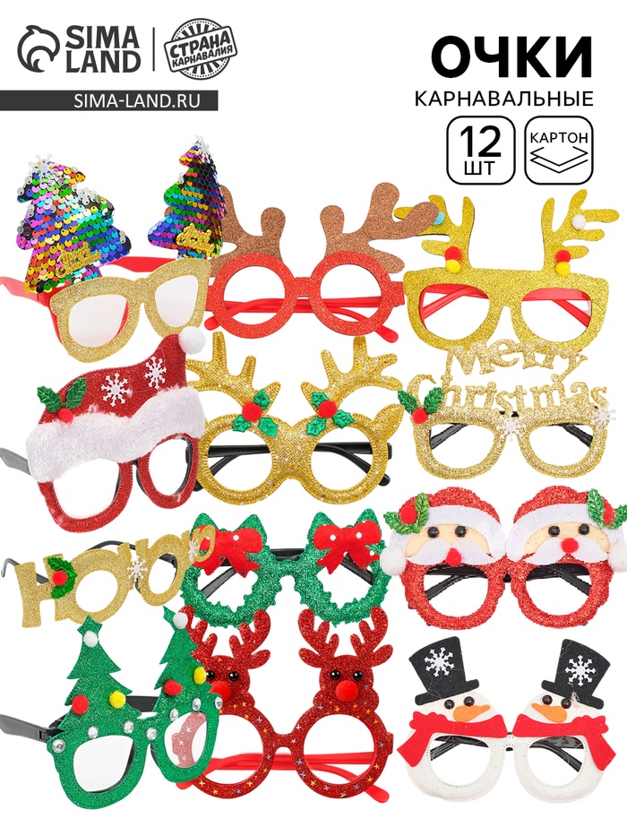 Карнавальные очки «Новогодние», набор 12 штук — Характеристики