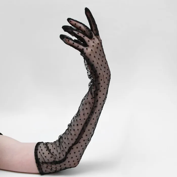 Карнавальные перчатки, чёрные в горох, длинные — Характеристики
