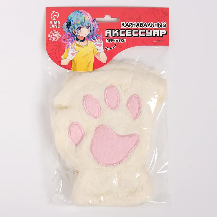 Карнавальные перчатки «Кошачьи лапки», белый — Характеристики
