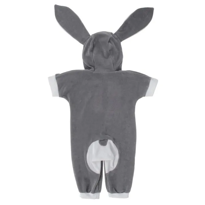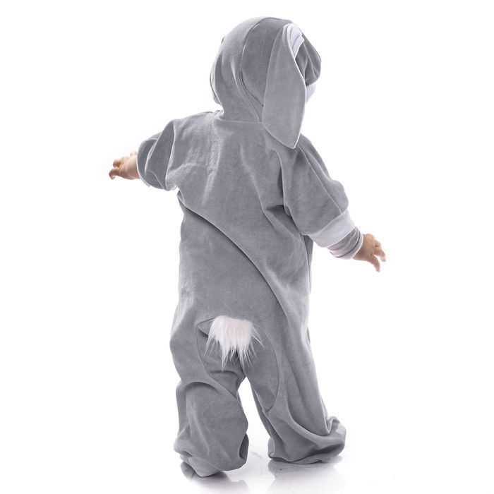 Мягкий и уютный карнавальный комбинезон «Зайка серый» — отличный выбор для первого костюма малыша. Изготовлен из нежного велюра и приятен на ощупь. Комбинезон украшен пушистым хвостиком и капюшоном с ушками, создавая реалистичный образ забавного зайчонка.