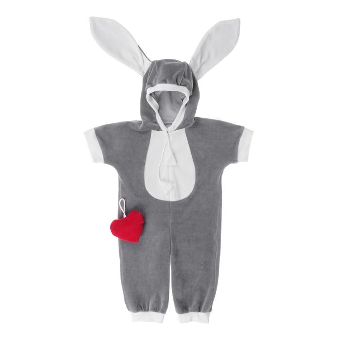Карнавальный комбинезон для самых маленьких «Зайка серый» с игрушкой, велюр, пушок и хвостик, рост 68-92 см, виды МИКС — Характеристики