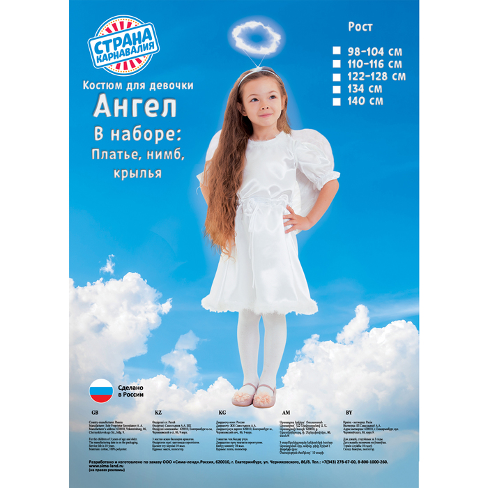 Карнавальный костюм «Ангел» поможет создать яркий образ. Такой наряд подойдёт для детских ёлок, утренников, тематических представлений и театральных выступлений.