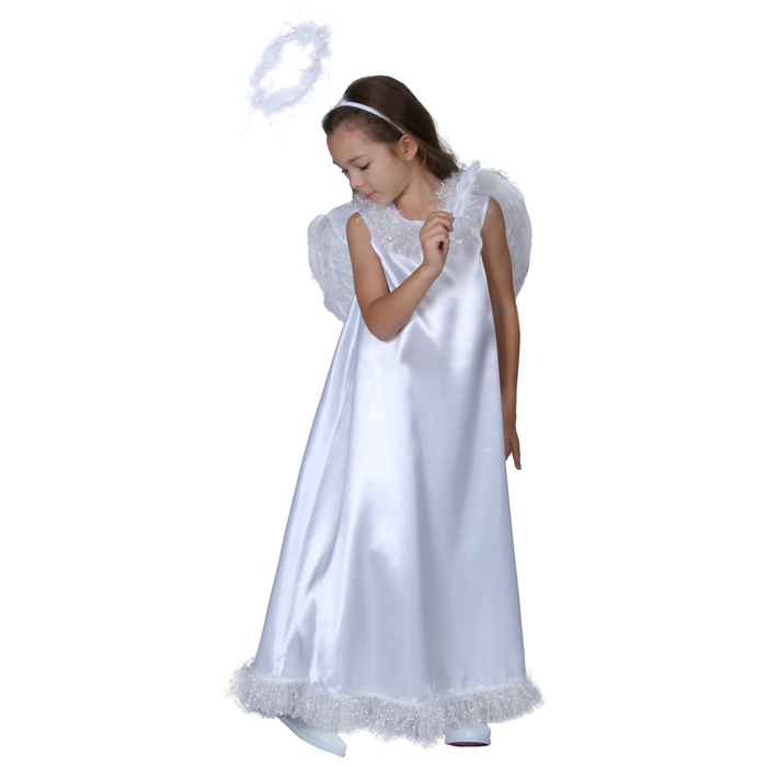 Карнавальный костюм «Белый ангел», нимб, платье, крылья, р. 34, рост 134–140 см — Характеристики