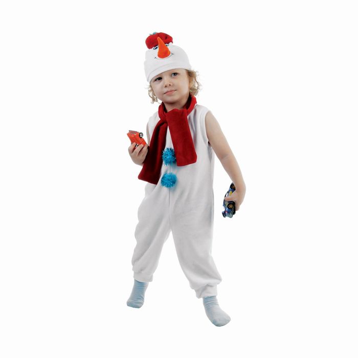 Яркий шарф повяжите ребёнку на шею, позитивная шапка с носом-морковкой дополнит наряд. Такой костюм отлично подойдёт для детских утренников, праздников и новогодних фотосессий.