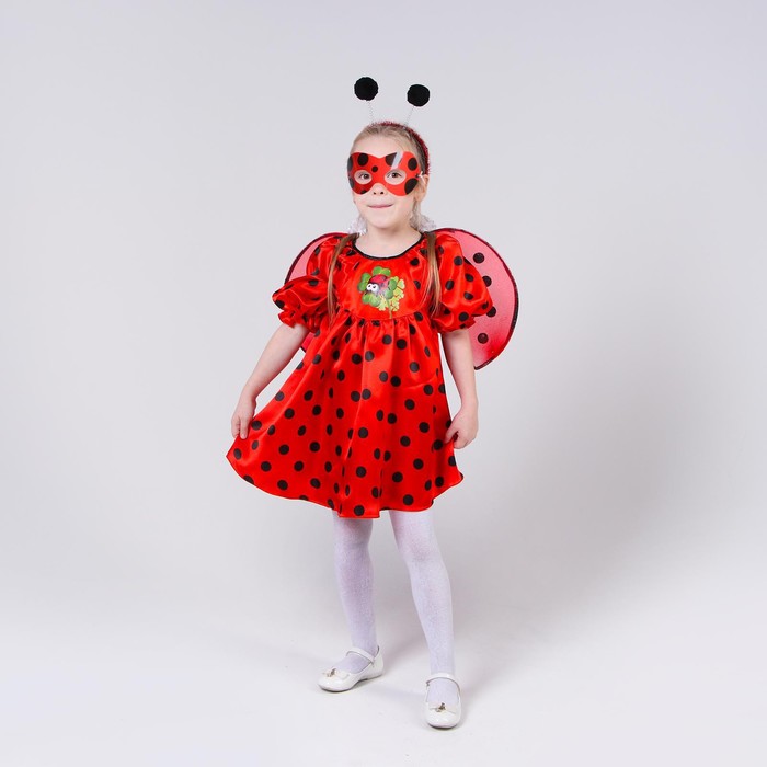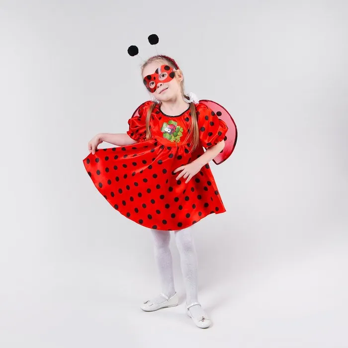 Карнавальный костюм «Божья коровка», атлас, платье, крылья, ободок, рост 98-104 см — Характеристики