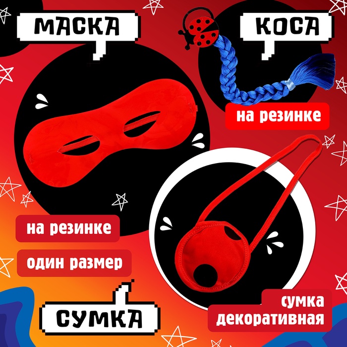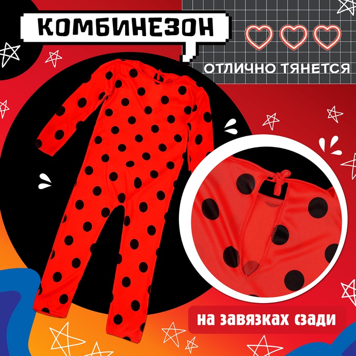 Карнавальный костюм «Божья коровка»: комбинезон, маска, коса, сумка, рост 110-122 см — Характеристики