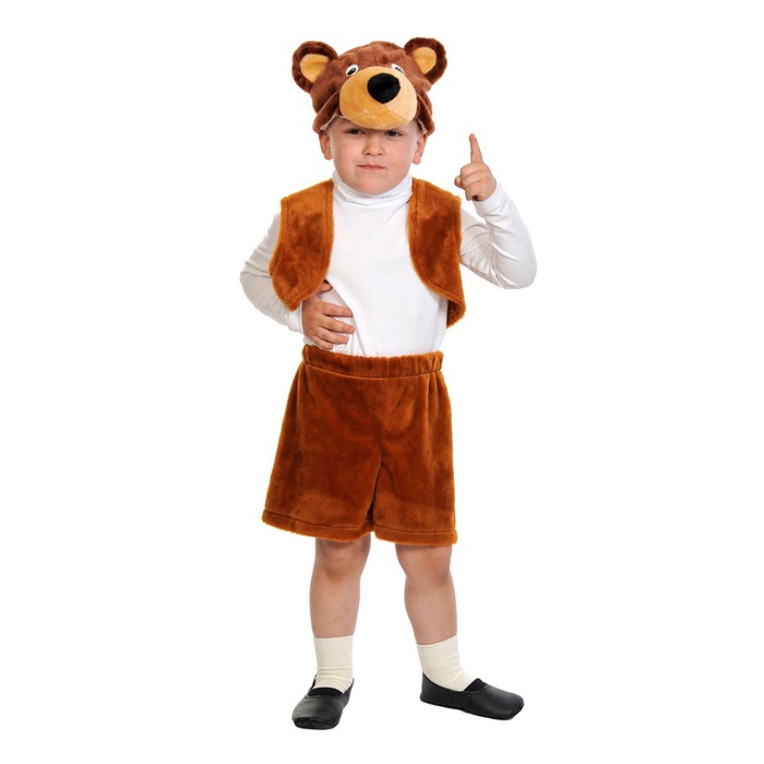 Карнавальный костюм «Бурый мишка», плюш-лайт, жилет, шорты, маска, рост 92-116 см — Характеристики