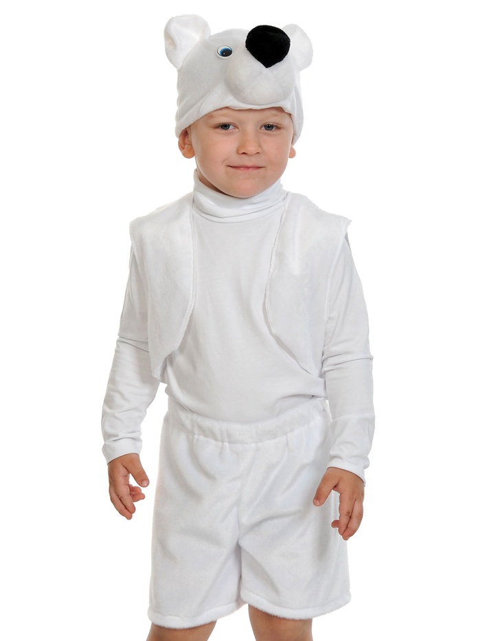 Карнавальный костюм «Белый мишка», плюш-лайт, жилет, шорты, маска, рост 92-116 см