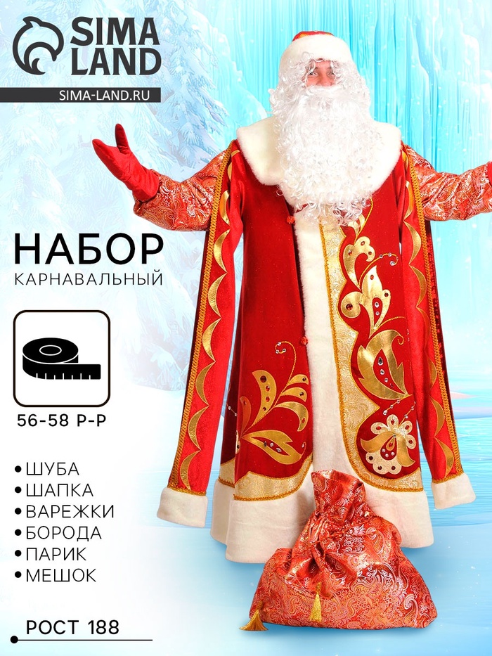 Карнавальный костюм «Дед Мороз», хохлома, р. 56-58, рост 188 см — Характеристики