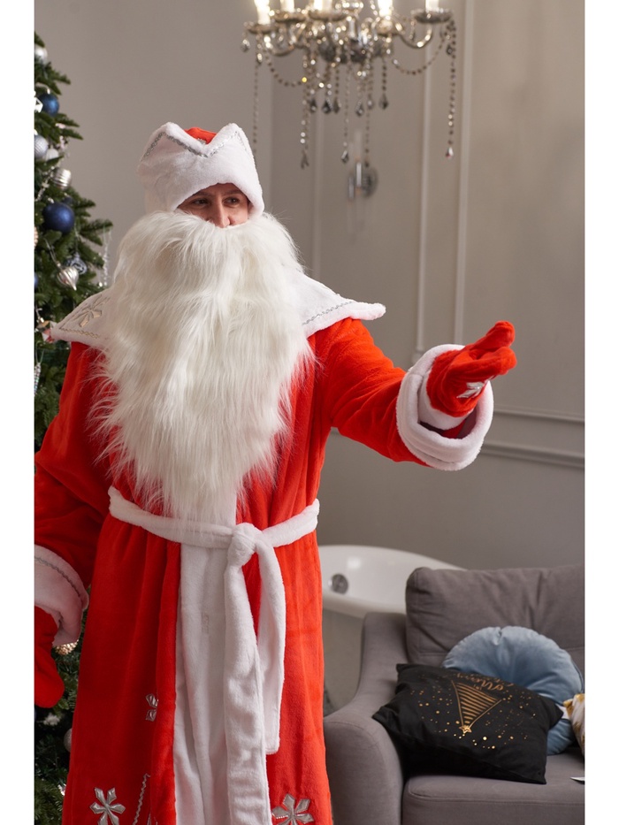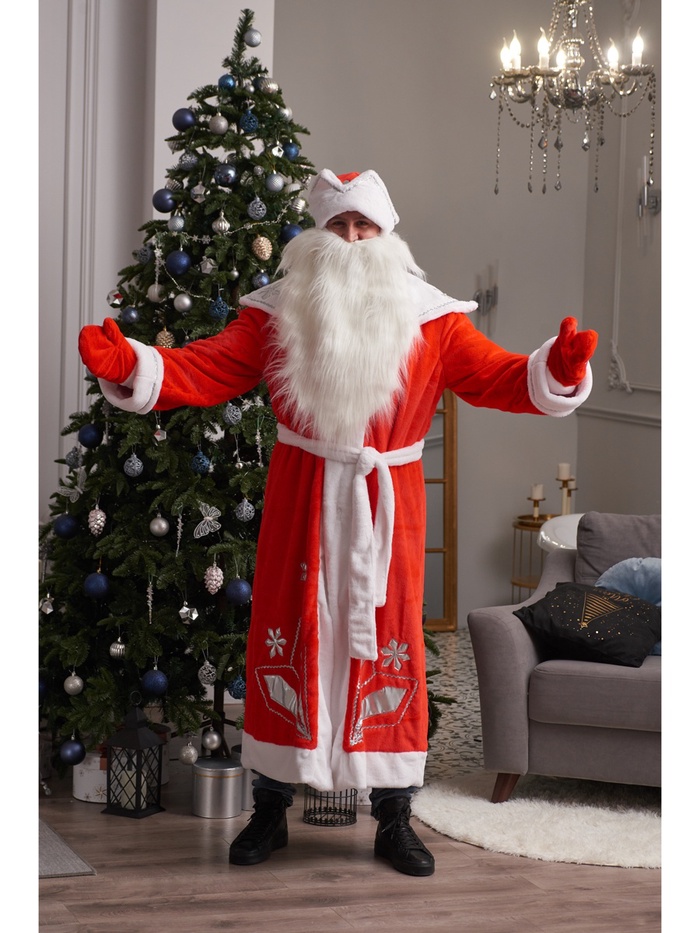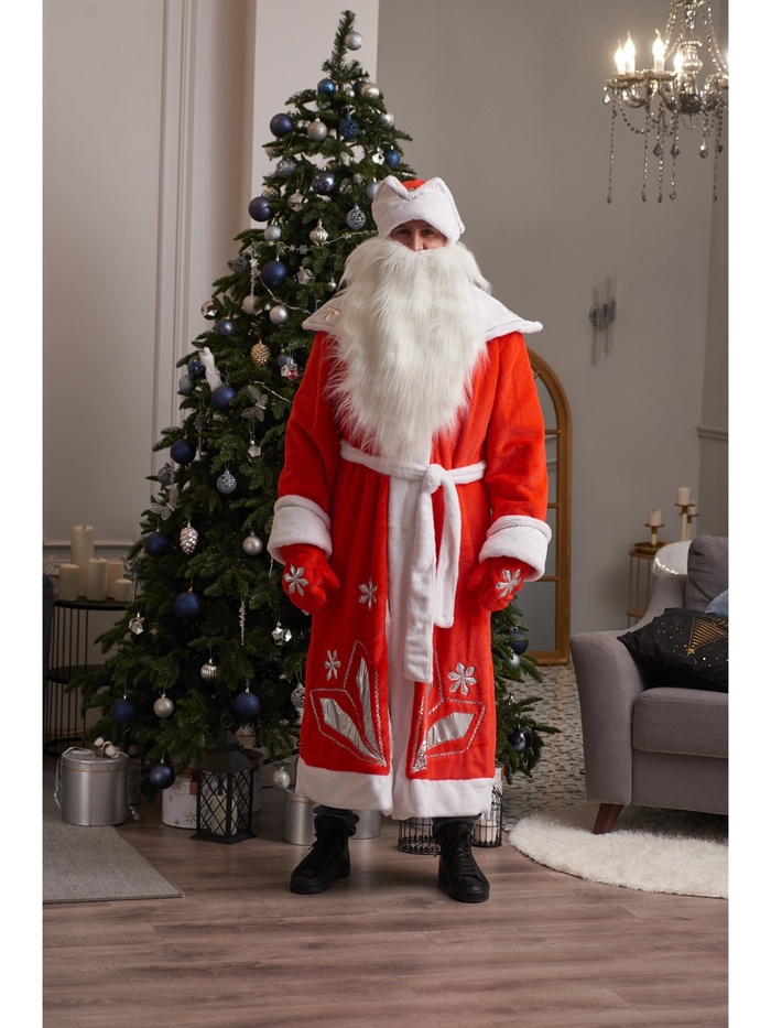 Карнавальный костюм «Дед Мороз», шуба, шапка, варежки, борода, 52-54, рост 180