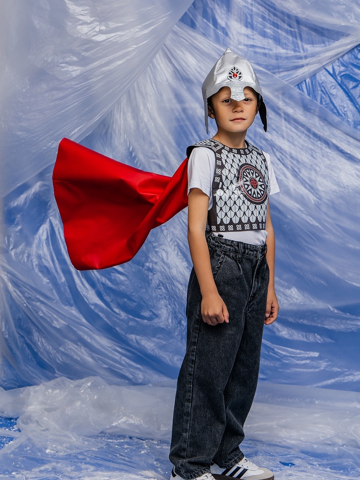 Карнавальный костюм детский «Богатырь Добрыня»: болеро, жилет, шлем, р. 110-122 — Характеристики