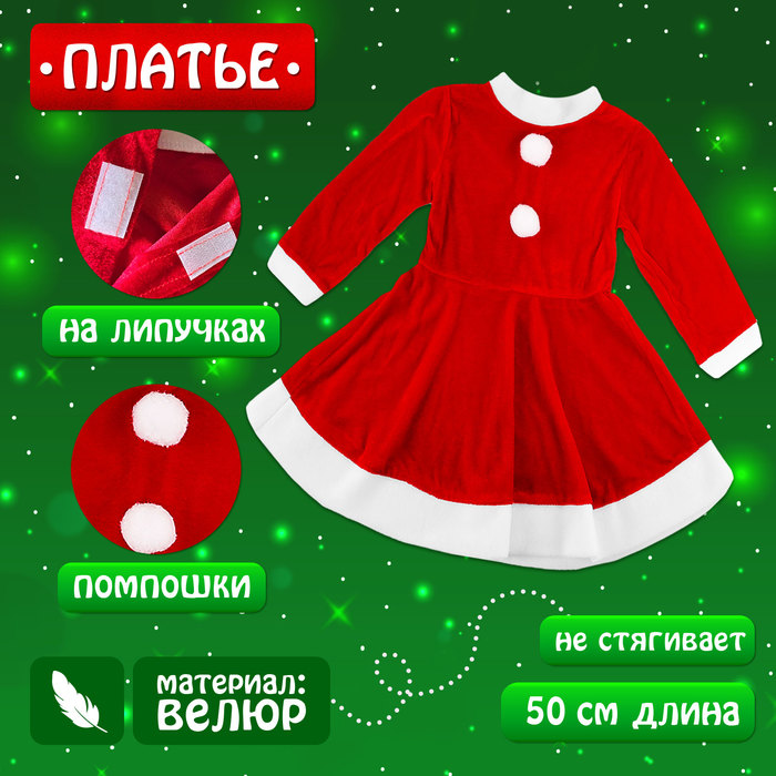Карнавальный костюм детский «Милая Санточка», рост 98-104 см: платье, накидка, колпак, брошки — Характеристики