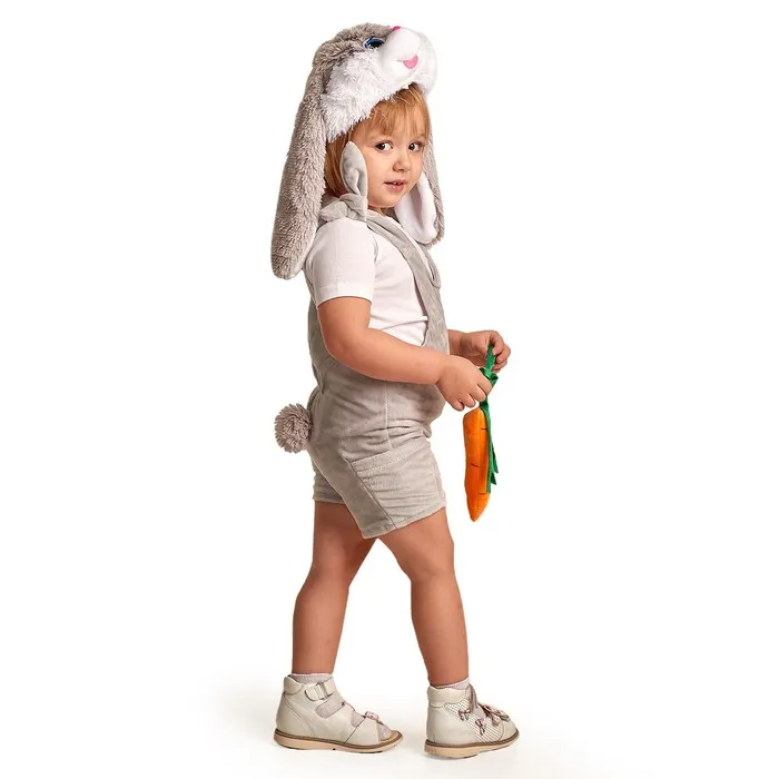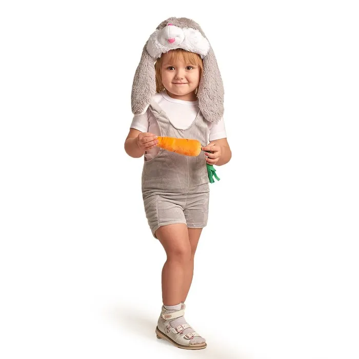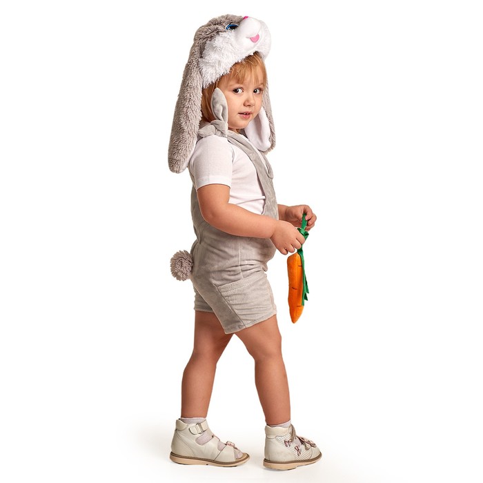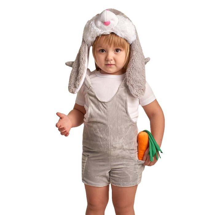 Карнавальный костюм детский «Заяц», шапка, комбинезон, мягконабивная морковка, 1-2 года, рост 92 см — Характеристики