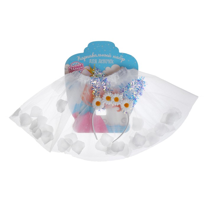 Карнавальный набор — отличное решение для любого праздничного мероприятия, детского утренника или волшебной фотосессии. Универсальный комплект превратит вашу малышку в сказочную красавицу. Лёгкая юбочка удобно сидит на талии, резиночка хорошо тянется и не сковывает движений. А ободок дополнит образ юной модницы.
