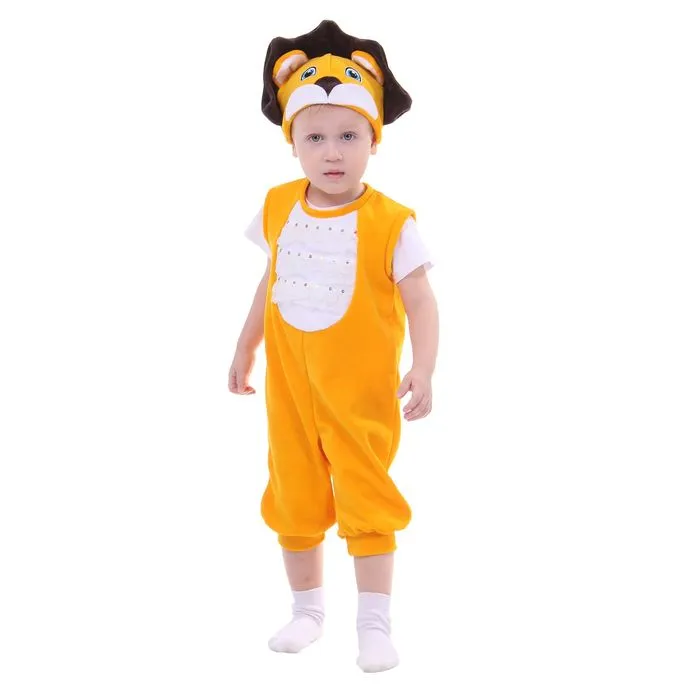 Карнавальный костюм для мальчика «Лев» от 1.5-3-х лет, велюр, 2 предмета: комбинезон, шапка — Характеристики