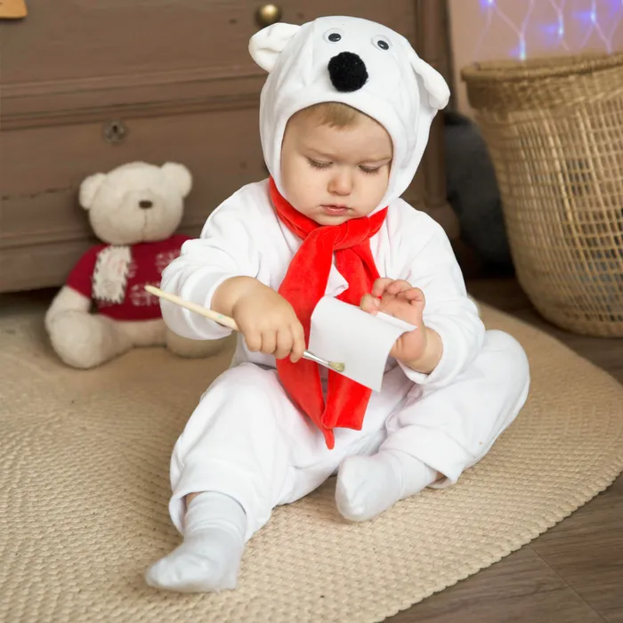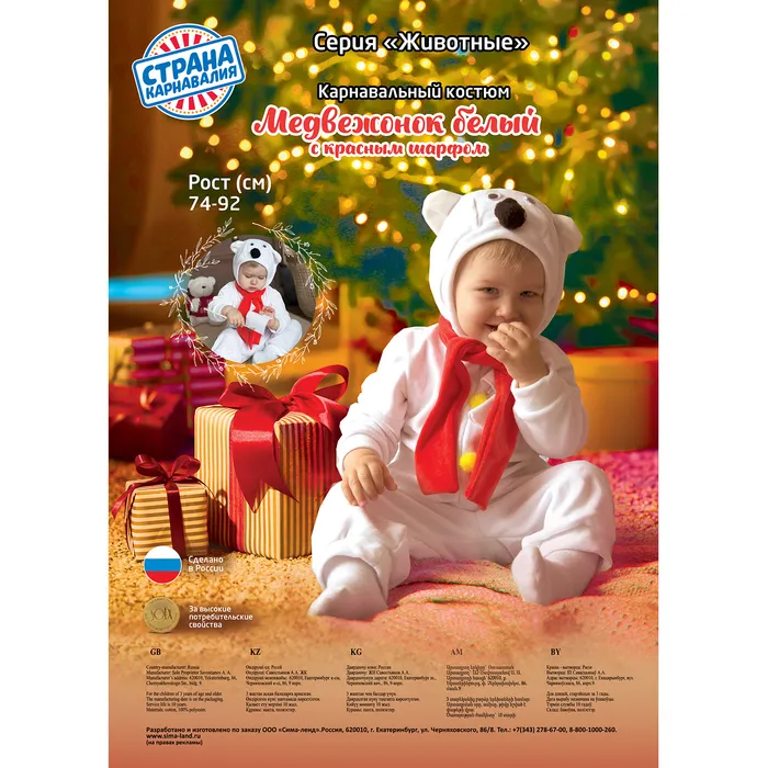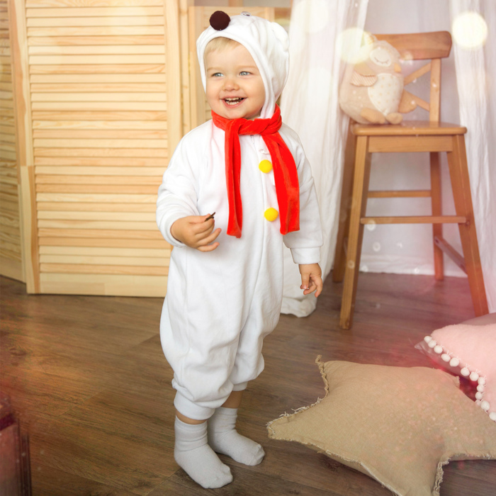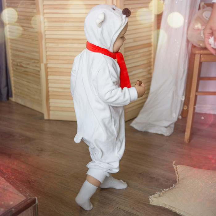 Карнавальный костюм для малышей «Белый медвежонок» с красным шарфом, велюр, хлопок, рост 74-92 см — Характеристики