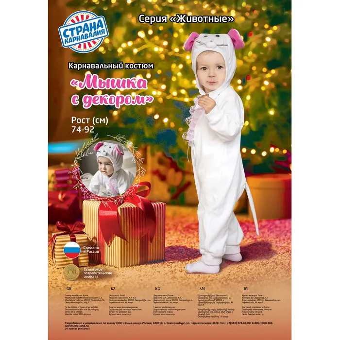 Карнавальный костюм для малышей «Мышка с декором», велюр, хлопок, рост 74-92 см — Характеристики