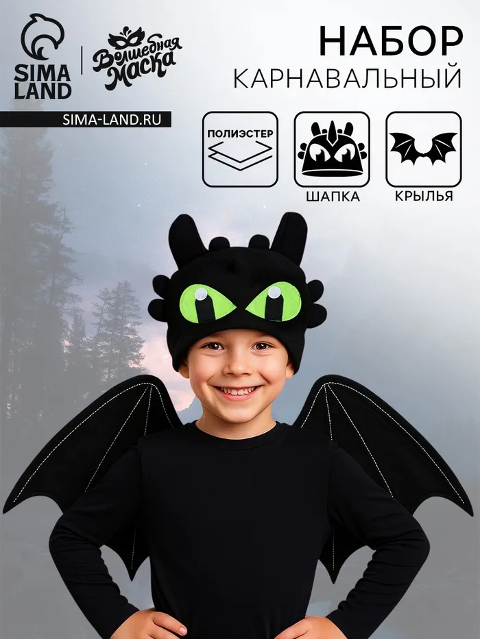 Карнавальный костюм «Дракон», крылья и шапка — Характеристики