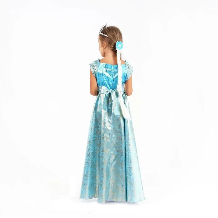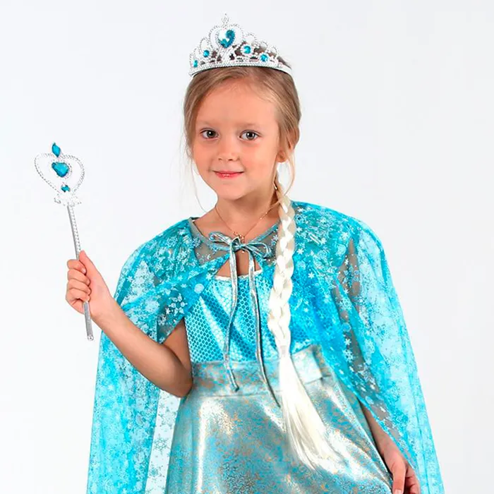 Костюм юной принцессы для малышки включает в себя всё необходимое для перевоплощения в принцессу — платье, плащ, диадему, жезл и косу. Такой комплект подарит девочке возможность почувствовать себя героиней любимого мультфильма и украсит любой детский праздник или костюмированное мероприятие.