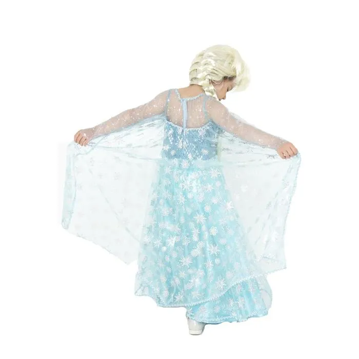 Карнавальный костюм «Эльза» позволит малышке с головой окунуться в сказочный мир популярного мультфильма. Платье в пол небесно-голубого цвета, украшенное серебристыми звёздами, смотрится невероятно нежно и приковывает к себе взгляд. Дополняет комплект светлый парик с косой. Такой изящный образ прекрасно подойдёт для спектаклей, утренников, тематических вечеринок и волшебного бала.