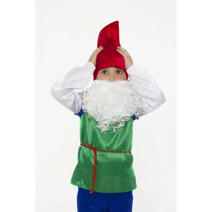 Карнавальный костюм «Гном» с белой бородой — отличный выбор для разнообразных праздничных мероприятий. Комплект включает в себя зелено-белую рубаху с поясом, синие брюки, красный колпак, башмаки и густую бороду. Этот костюм позволяет детям превратиться в настоящих сказочных гномов, создавая атмосферу волшебства и радости.