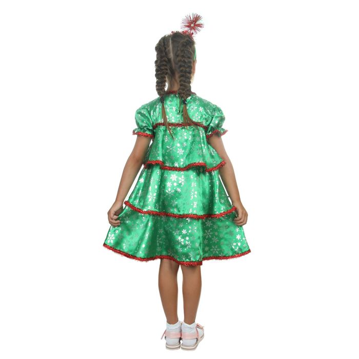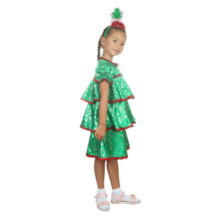 Карнавальный костюм «Ёлочка со снежинками», атлас, платье ярусами, ободок, р. 30, рост 110-116 см — Характеристики