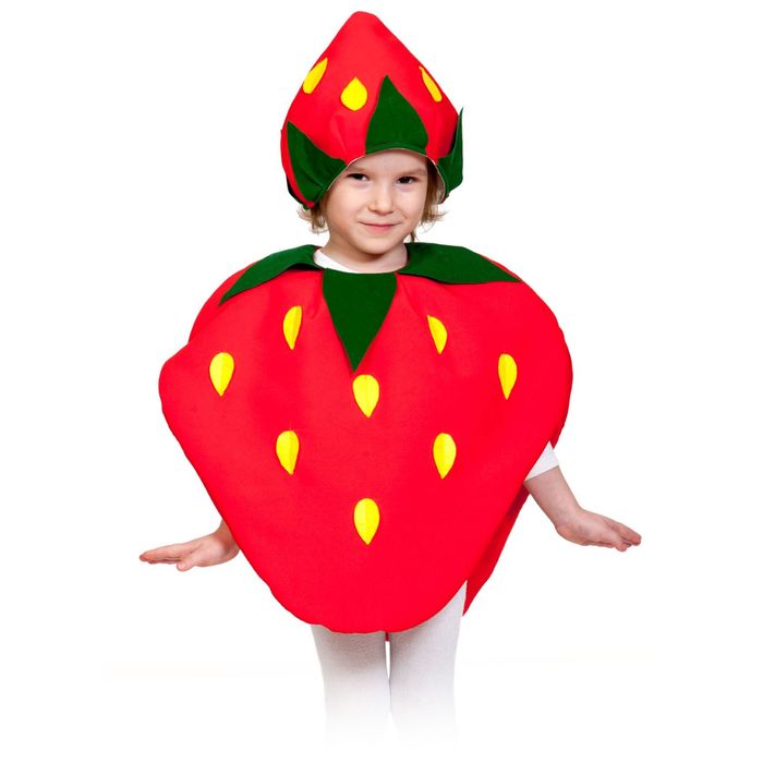 Карнавальный костюм «Клубничка», шапочка, накидка, рост 98-128 см — Характеристики