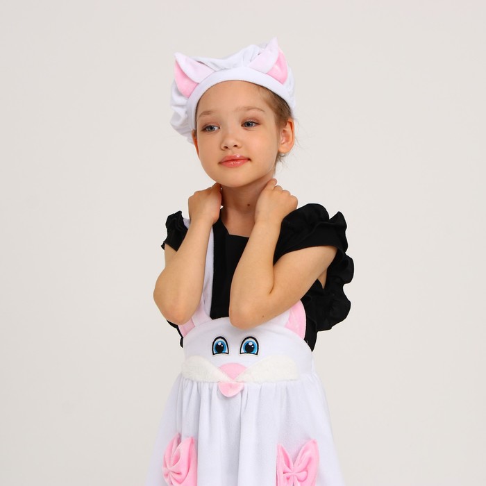 Карнавальный костюм «Кошечка белая с мордочкой» для девочки идеально подойдет для утренника или спектакля в школе или садике. Платье свободного кроя не сковывает движения, что обеспечивает комфорт на протяжении всего мероприятия.