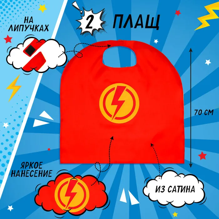Карнавальный костюм «Красная молния»: плащ и маска — Характеристики