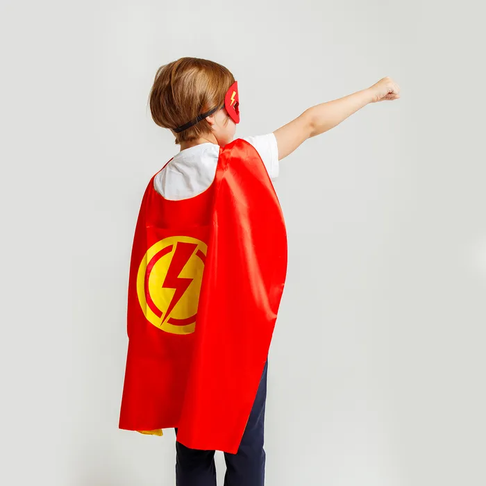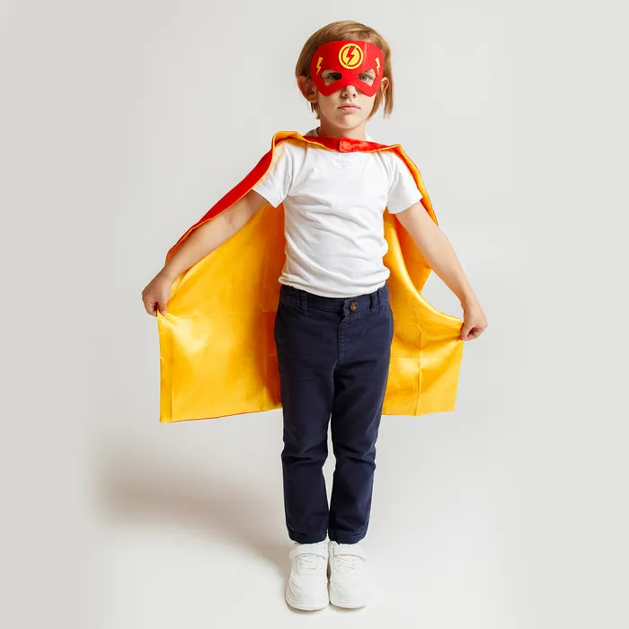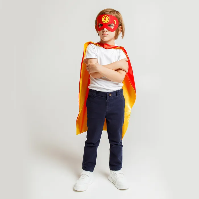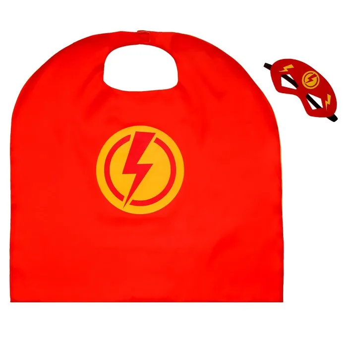Карнавальный набор «Красная молния» — это все, что нужно юному супергерою для яркого и незабываемого праздника. В набор входят стильный плащ и удобная маска, выполненные в красно-желтой гамме.