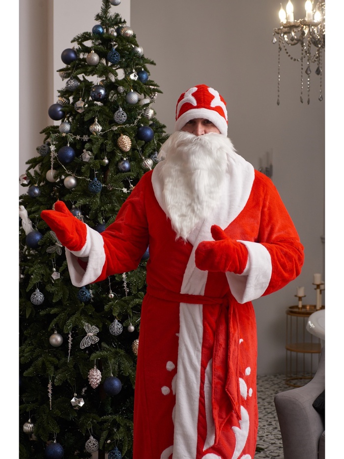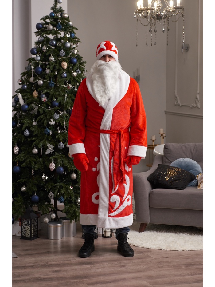 Карнавальный костюм красный «Дед Мороз»: шуба, шапка, варежки, борода, 52-54, рост 180 — Характеристики