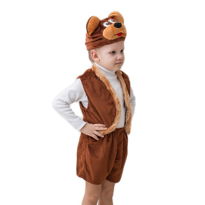 Карнавальный костюм «Мишка», мех, шапка, жилет, шорты, рост 104-116 см