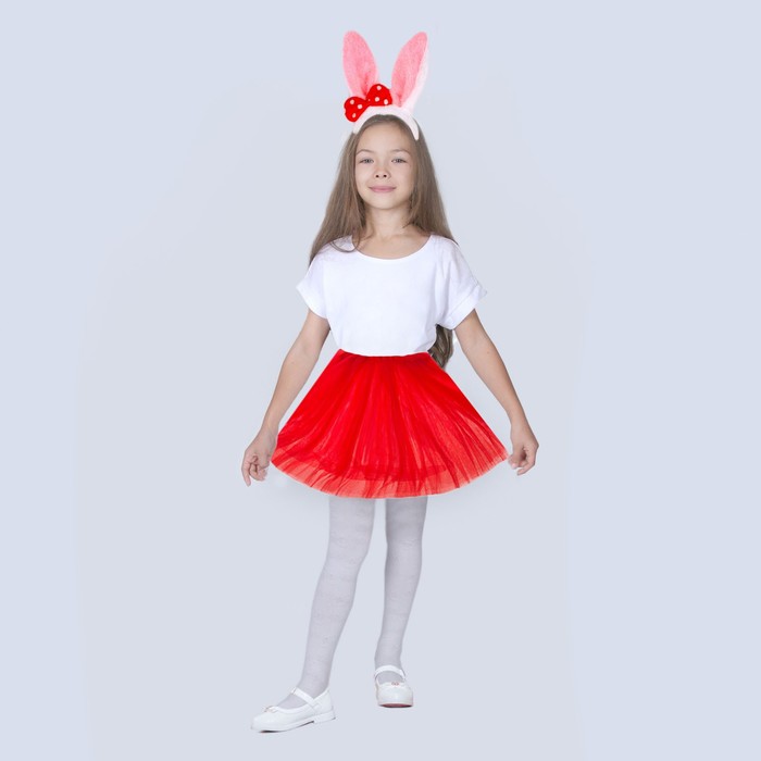 Карнавальный костюм «Зайка с бантиком», ободок, юбка красная, 3-7 лет