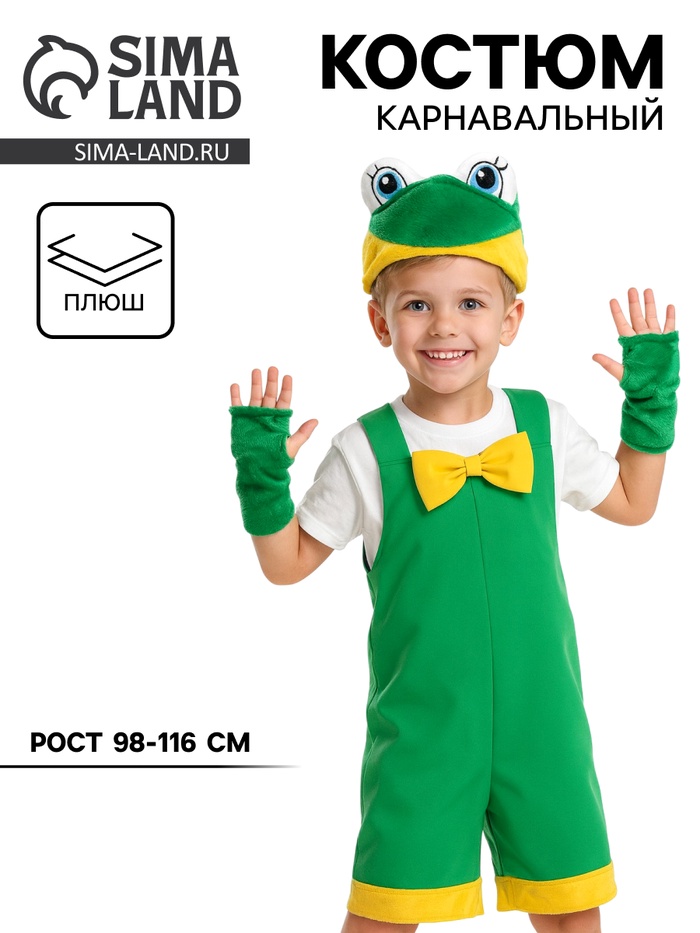 Карнавальный костюм «Лягушонок» ткань-плюш, полукомбинезон, шапочка, 3-6 лет, рост 98-116 см — Характеристики