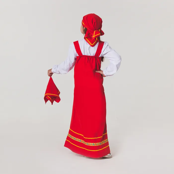 Карнавальный наряд для девочки подарит радость и поможет почувствовать себя настоящей принцессой. Одежда, вдохновленная русским народным стилем, создает яркий образ и поднимает настроение. Сарафан привлечёт внимание всех окружающих, а косынка и платок завершат этот образ.