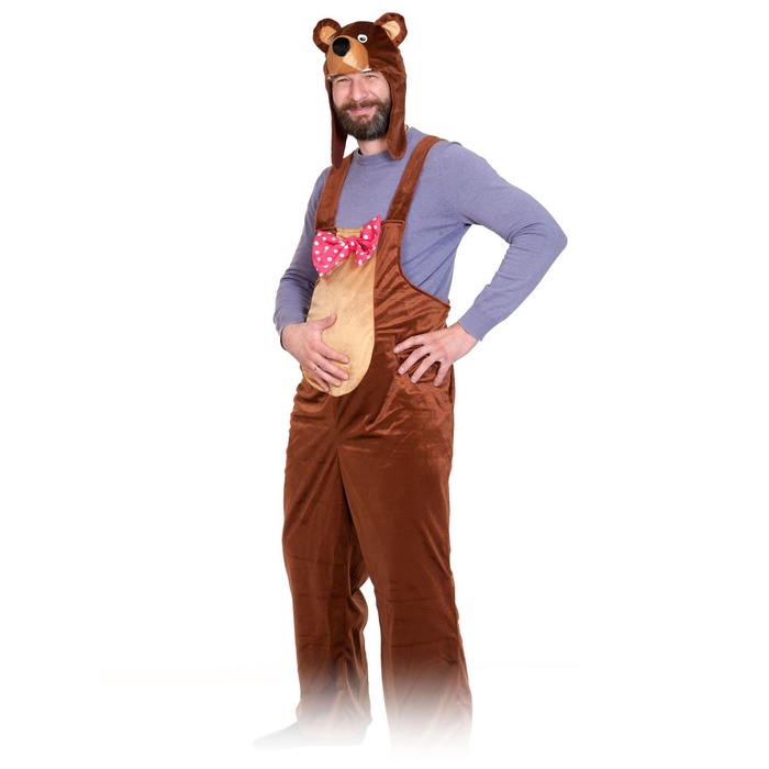 Карнавальный костюм «Медведь бурый», плюш, полукомбинезон, маска-шапочка, р. 52-54, рост 182 см — Характеристики