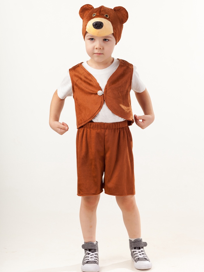 Карнавальный костюм «Медведь Потапик», жилет, шорты, шапка, размер 110-56