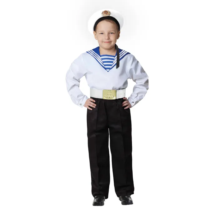 Карнавальный костюм «Моряк в бескозырке» для мальчика, белая фланка, брюки, ремень, р. 34, рост 134 см — Характеристики