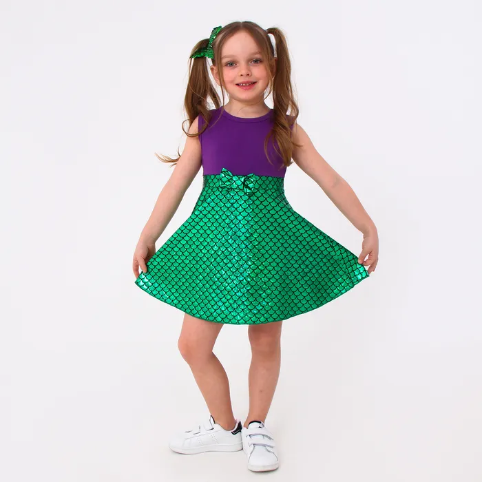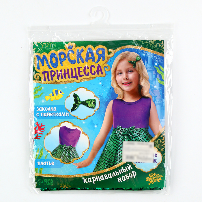 Карнавальный набор «Морская принцесса» — элегантный выбор для маленьких модниц. Комплект включает в себя красивое фиолетовое платье с зелёной юбкой и заколку с зелёными пайетками, позволяя девочке почувствовать себя настоящей морской принцессой.