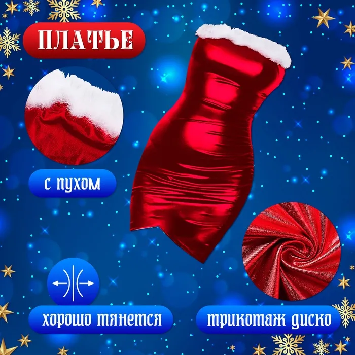 Карнавальный костюм «Новогодняя красавица»: платье, колпак, перчатки, чокер, р-р 42-44, красный — Характеристики
