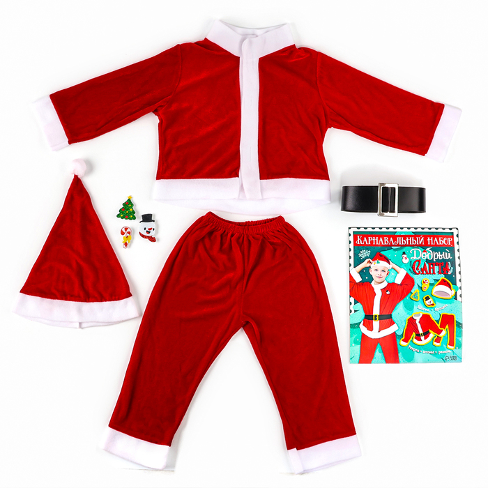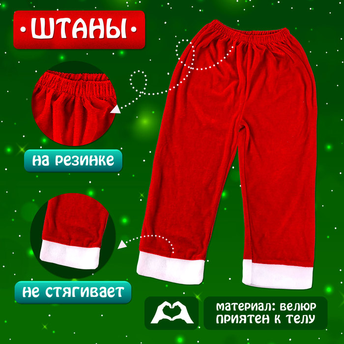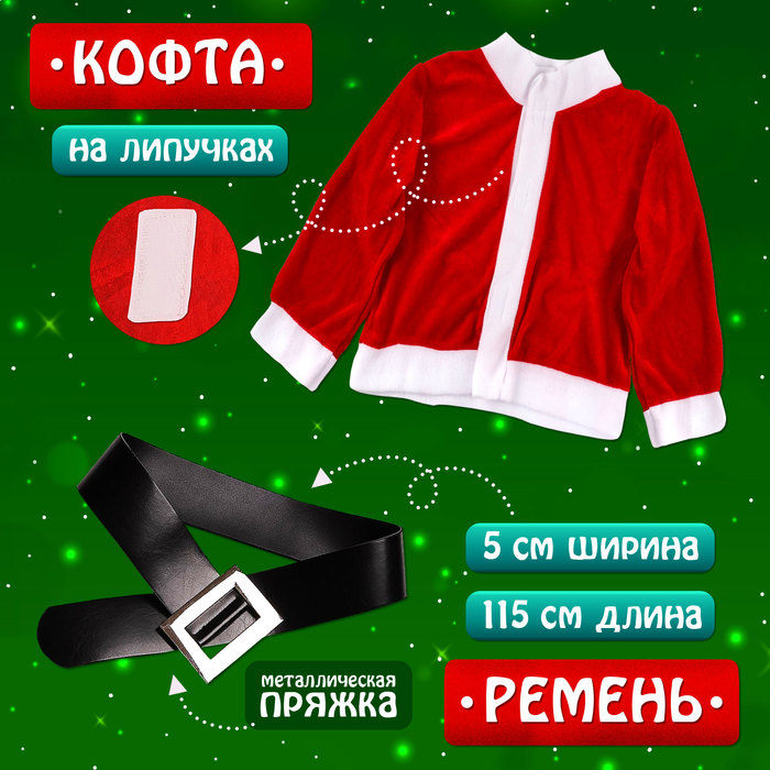 Карнавальный костюм новогодний «Добрый Санта», рост 104-110 см, кофта, штаны, колпак, ремень, брошки — Характеристики