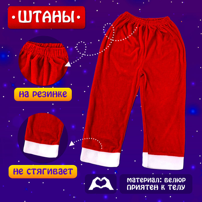 Карнавальный костюм новогодний «Добрый Санта», рост 122-128 см, кофта, штаны, колпак, ремень, брошки — Характеристики