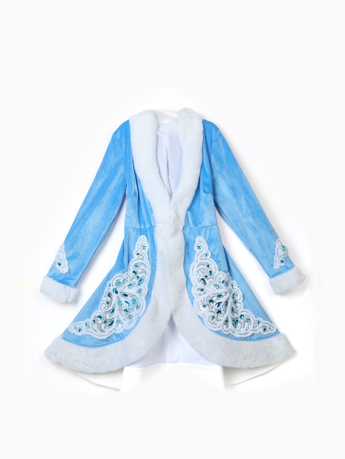 Костюм карнавальный «Снегурочка из парчи», голубая шубка, шапочка, рукавички, р. 48