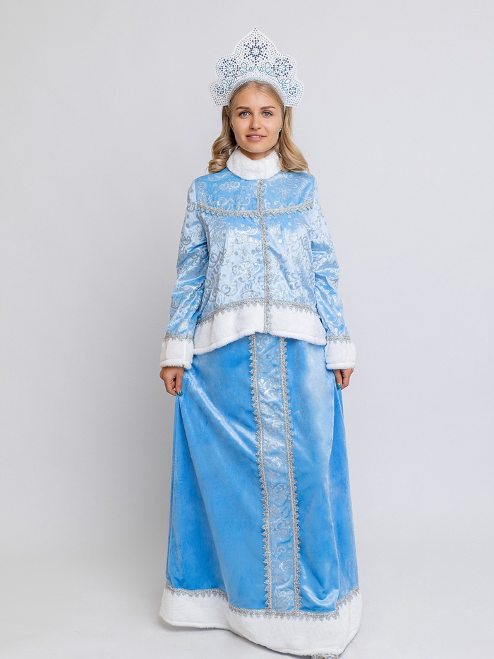 Костюм карнавальный «Снегурочка», шуба с узорами из парчи, кокошник, варежки, р-р 44-50, рост 170 см