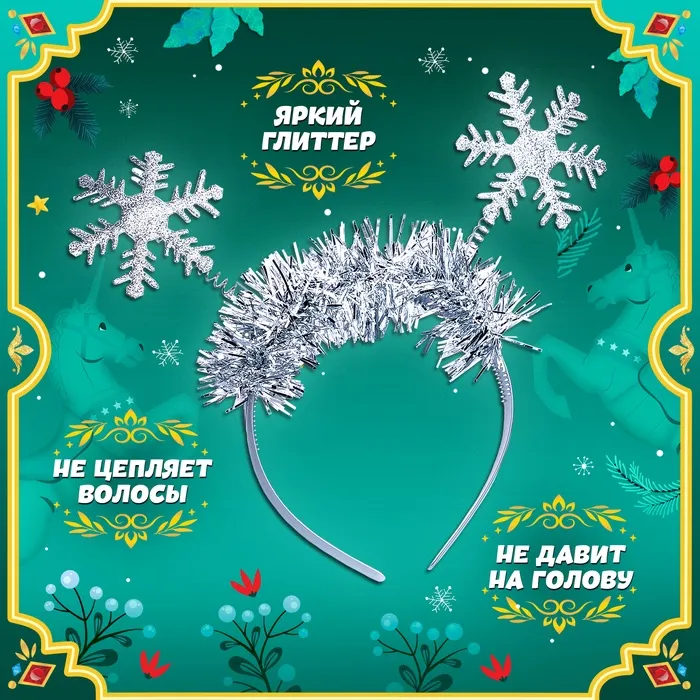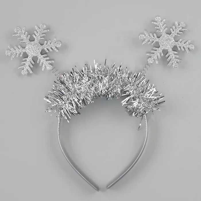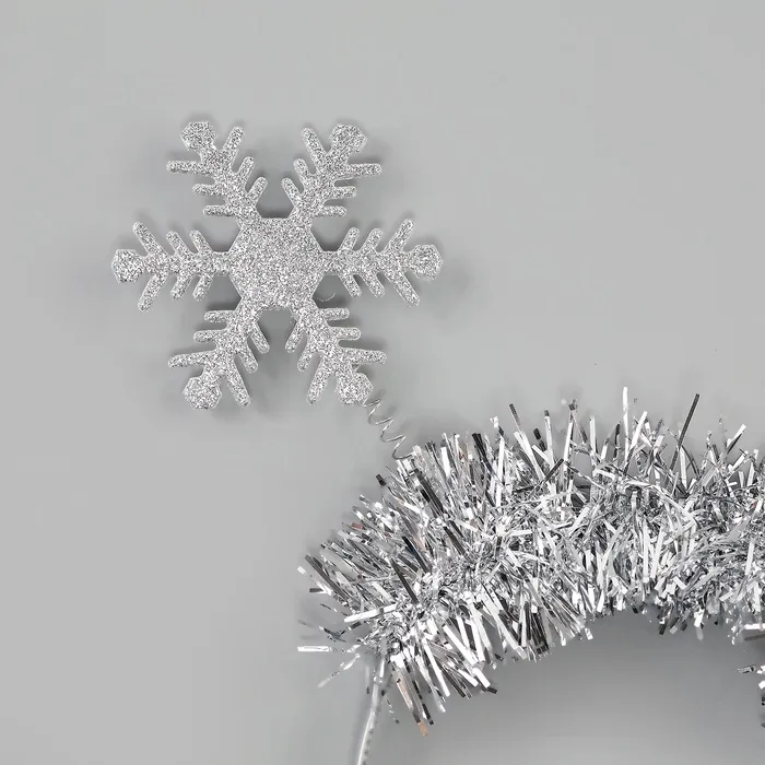 • Праздничный ободок — мишура и две блестящие снежинки на пружинках превратят обычный ободок в настоящий аксессуар для маленькой модницы.