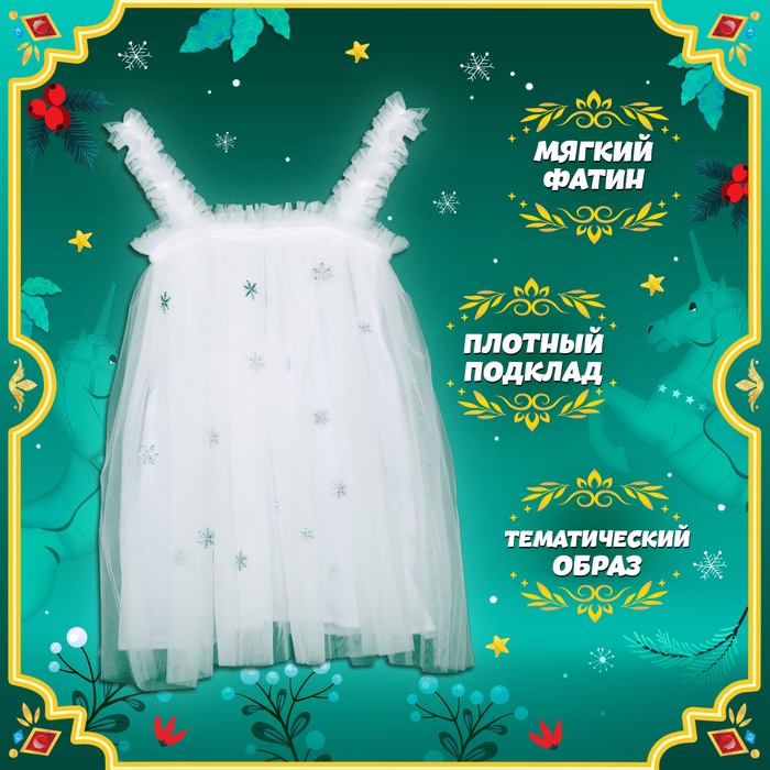 Карнавальный костюм новогодний «Снежинка», платье, ободок, рост 116-122 см — Характеристики