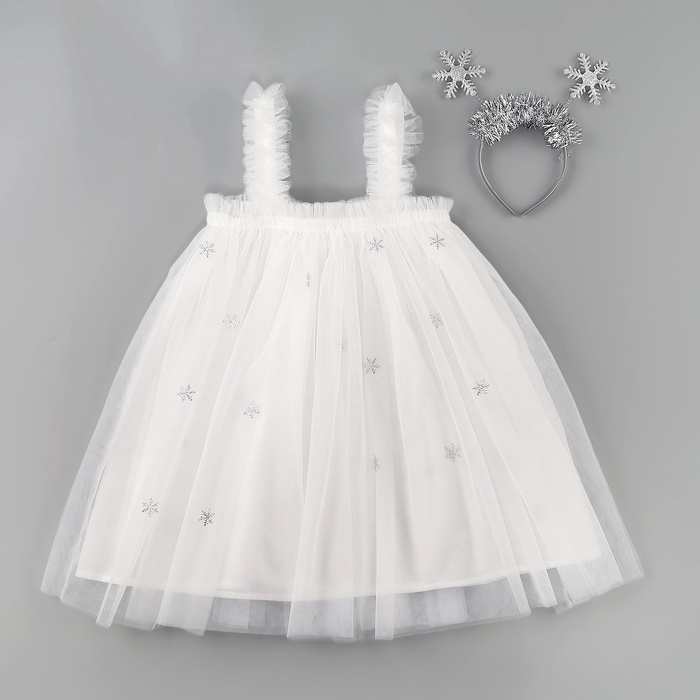 Карнавальный костюм новогодний «Снежинка», платье, ободок, рост 116-122 см