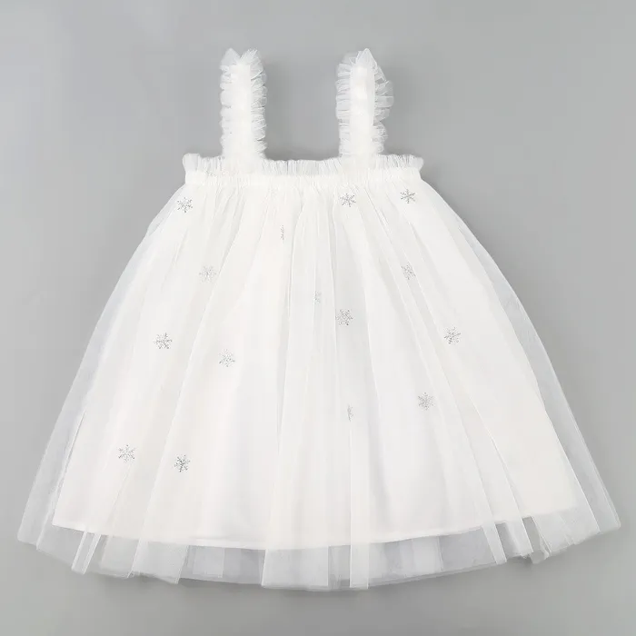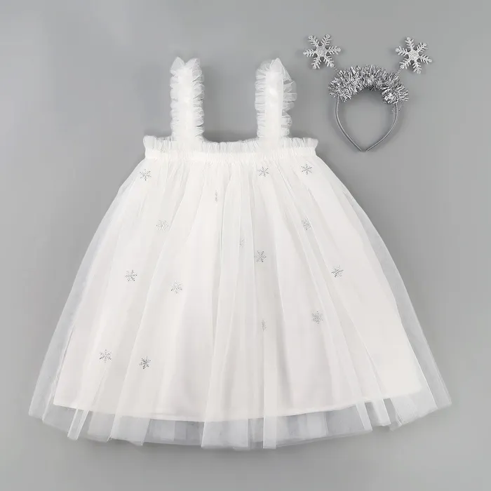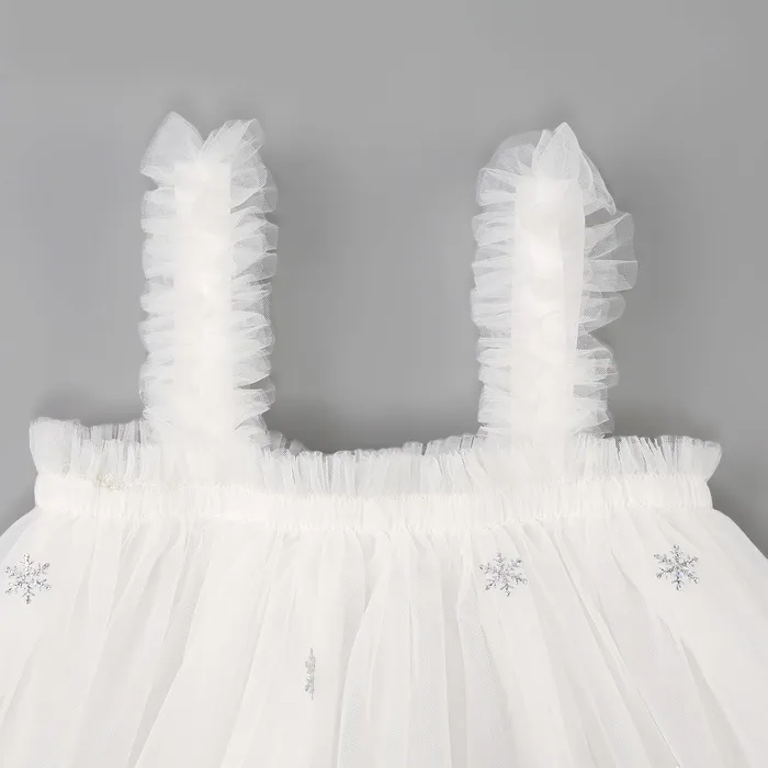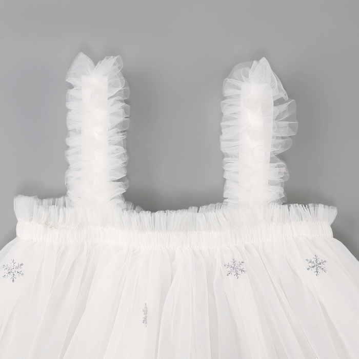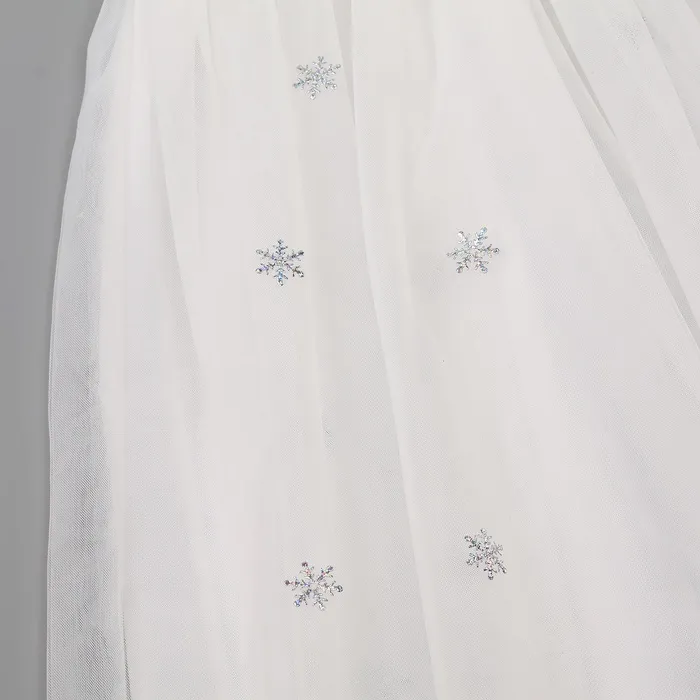 • Лёгкое и воздушное платье, украшенное сверкающими снежинками, создаст сказочный образ.