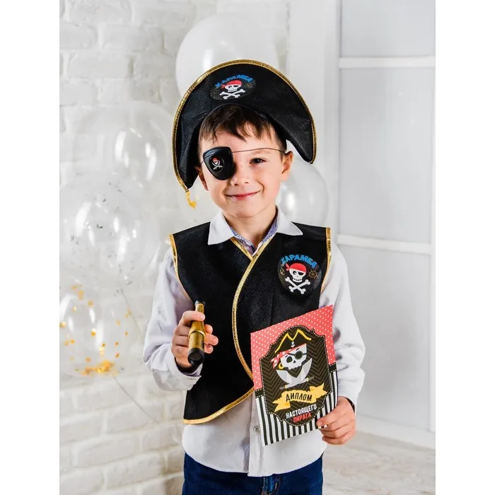 Планируете детскую тематическую вечеринку и хотите превратить ребёнка в грозу морей, бесстрашного и неукротимого капитана, а может быть, собрать целую команду? Карнавальный набор пирата прекрасно воссоздаст этот яркий образ. В комплект вошли все самые важные и узнаваемые детали персонажа, чтобы ваш малыш вжился в эту роль и стал звездой торжества.