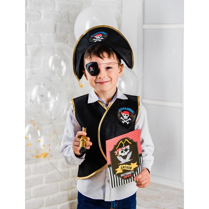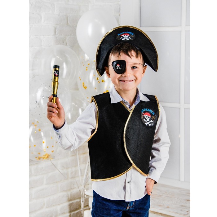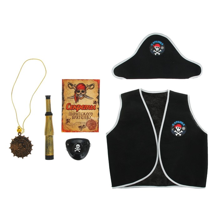 Карнавальный костюм «Пират», шляпа, жилетка, наглазник, орден, подзорная труба, кодекс — Характеристики